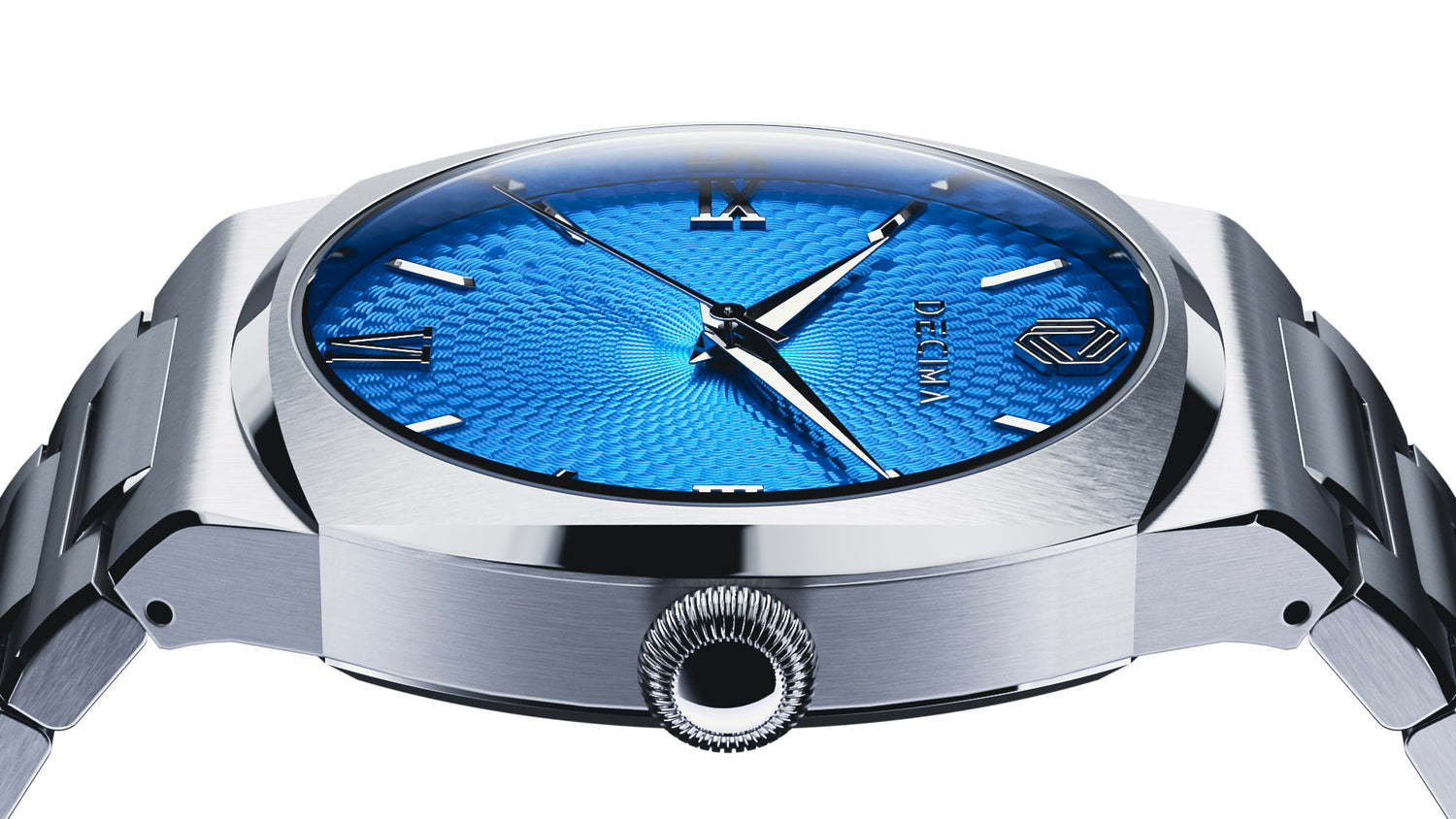 The Decima Gatekeeper Collection seamlessly blends two distinct worlds of watchmaking. Its classic dial showcases elegant dauphine hands, multifaceted applied indices, and a guilloché panier pattern, while the bold, modern case stands out with its unique shape and a mix of brushed and mirror-polished finishes. The Gatekeeper boldly demonstrates that combining contrasting styles in a single timepiece creates a striking, standout statement.