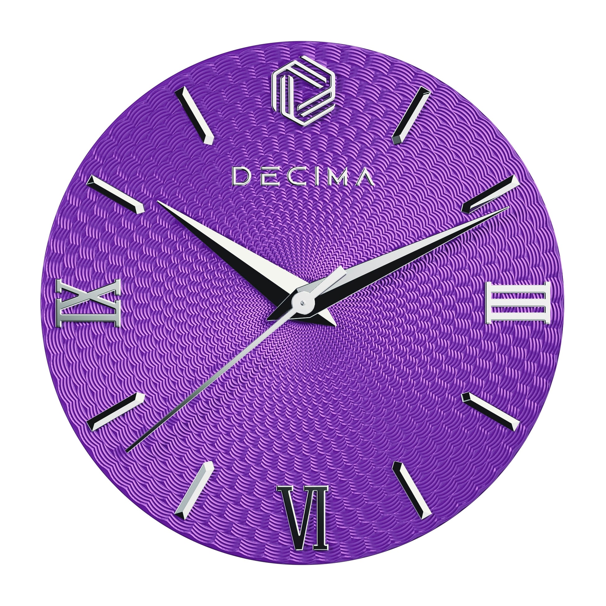 The Gatekeeper showcases a unique blend of applied custom-made, mirror-polished Roman numerals and chamfered, faceted indices. Roman numerals are displayed at the 3, 6, and 9 o'clock positions, while the Decima logo is distinctively placed at the 12-hour position.