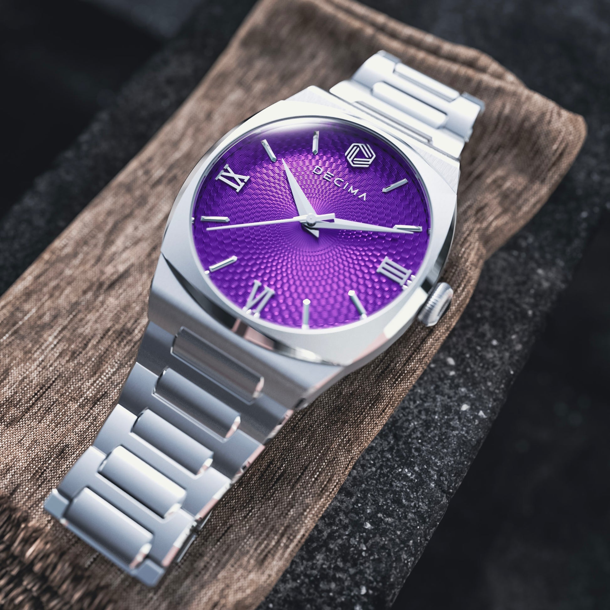 The Decima Gatekeeper Collection seamlessly blends two distinct worlds of watchmaking. Its classic dial showcases elegant dauphine hands, Roman numerals, and a guilloché panier pattern, while the bold, modern case stands out with its unique shape and a mix of brushed and mirror-polished finishes. The Gatekeeper boldly demonstrates that combining contrasting styles in a single timepiece creates a striking, standout statement.