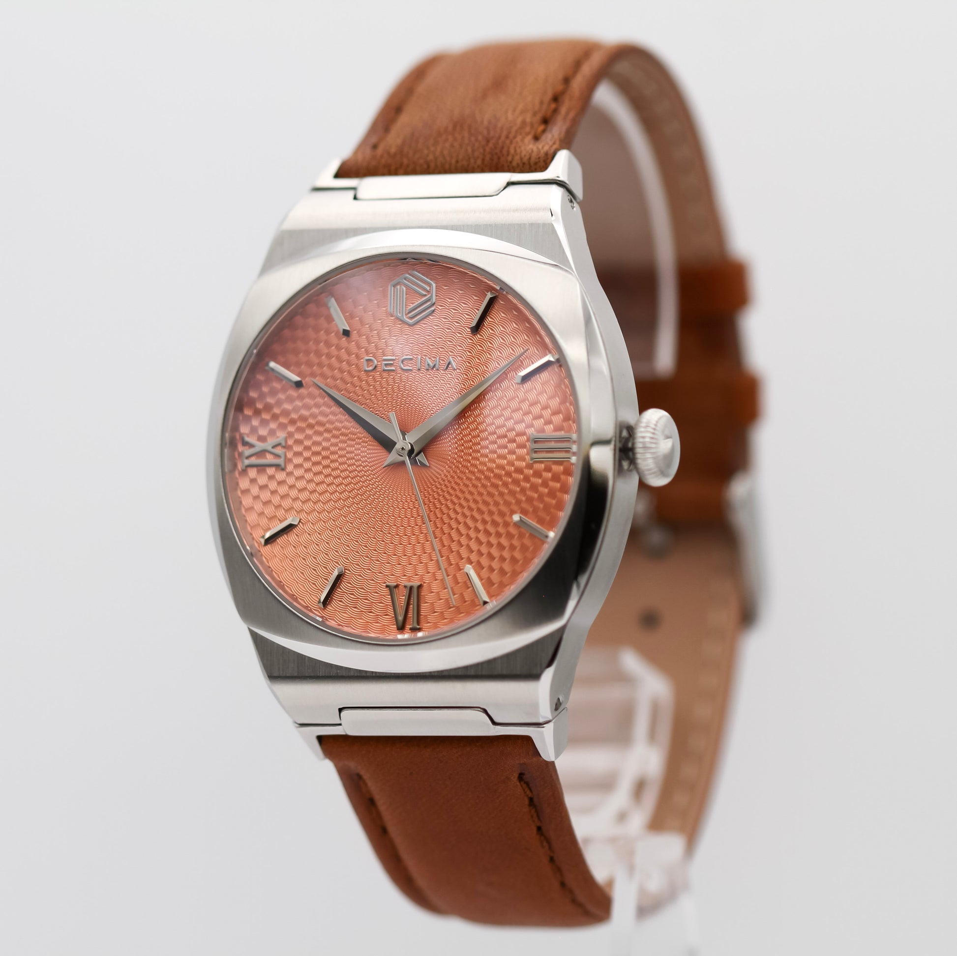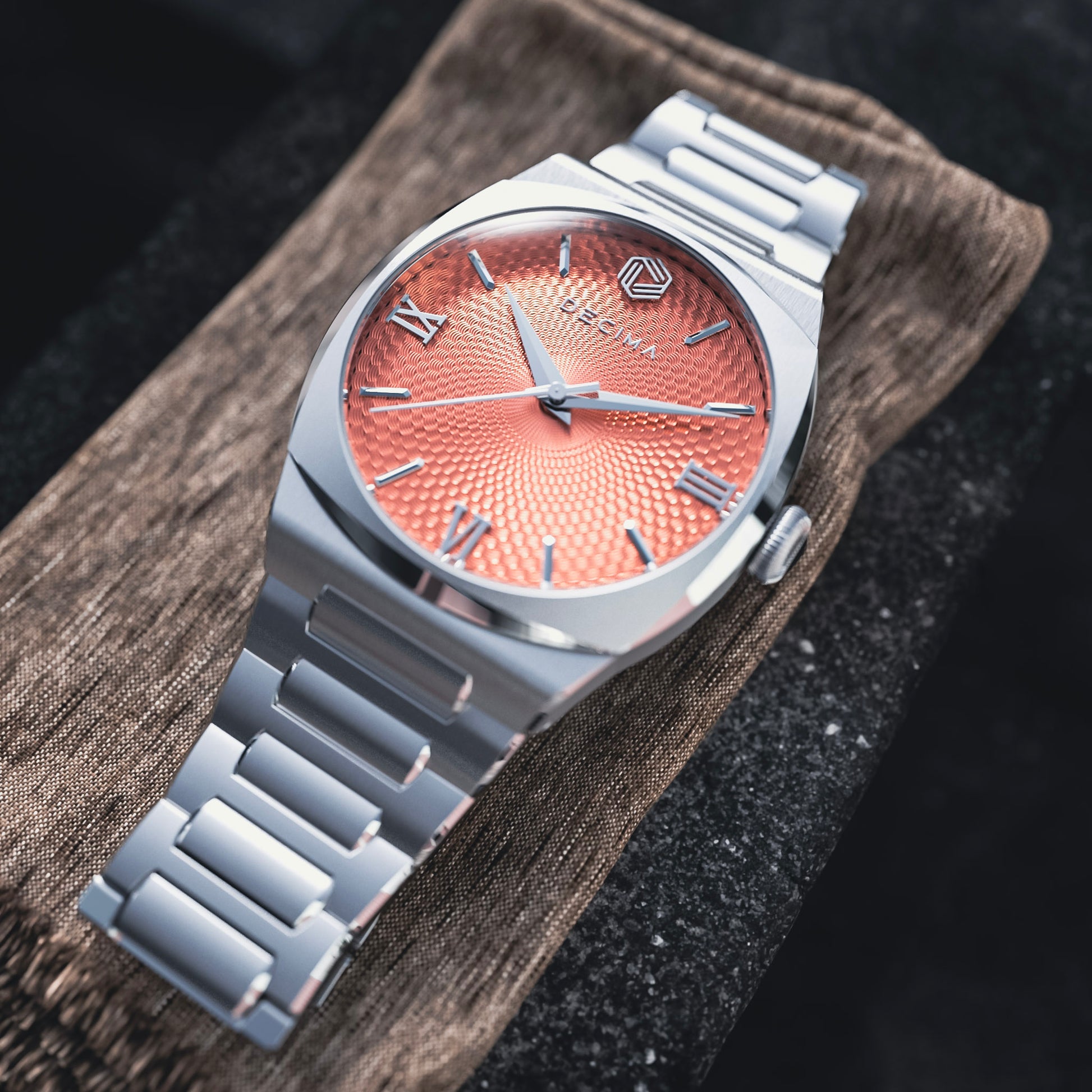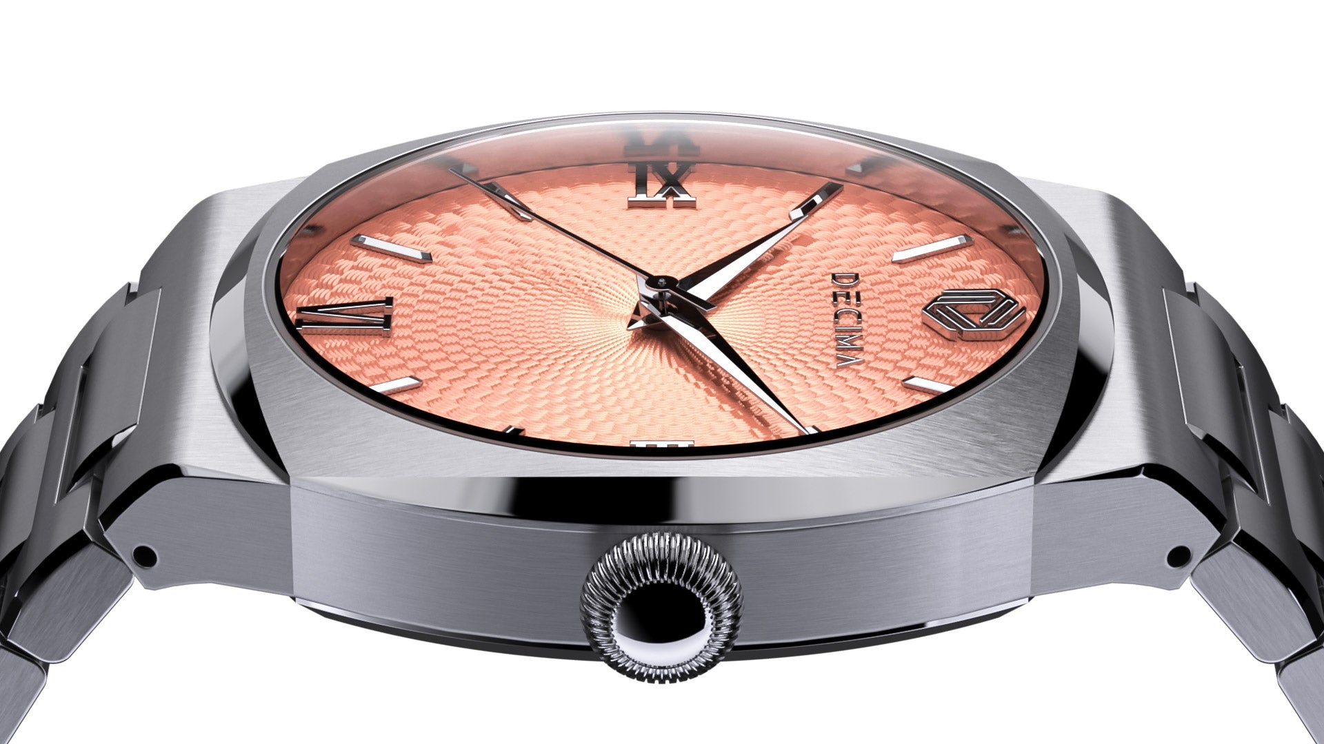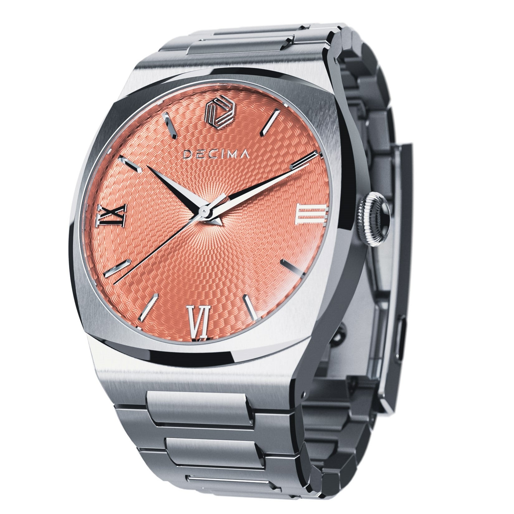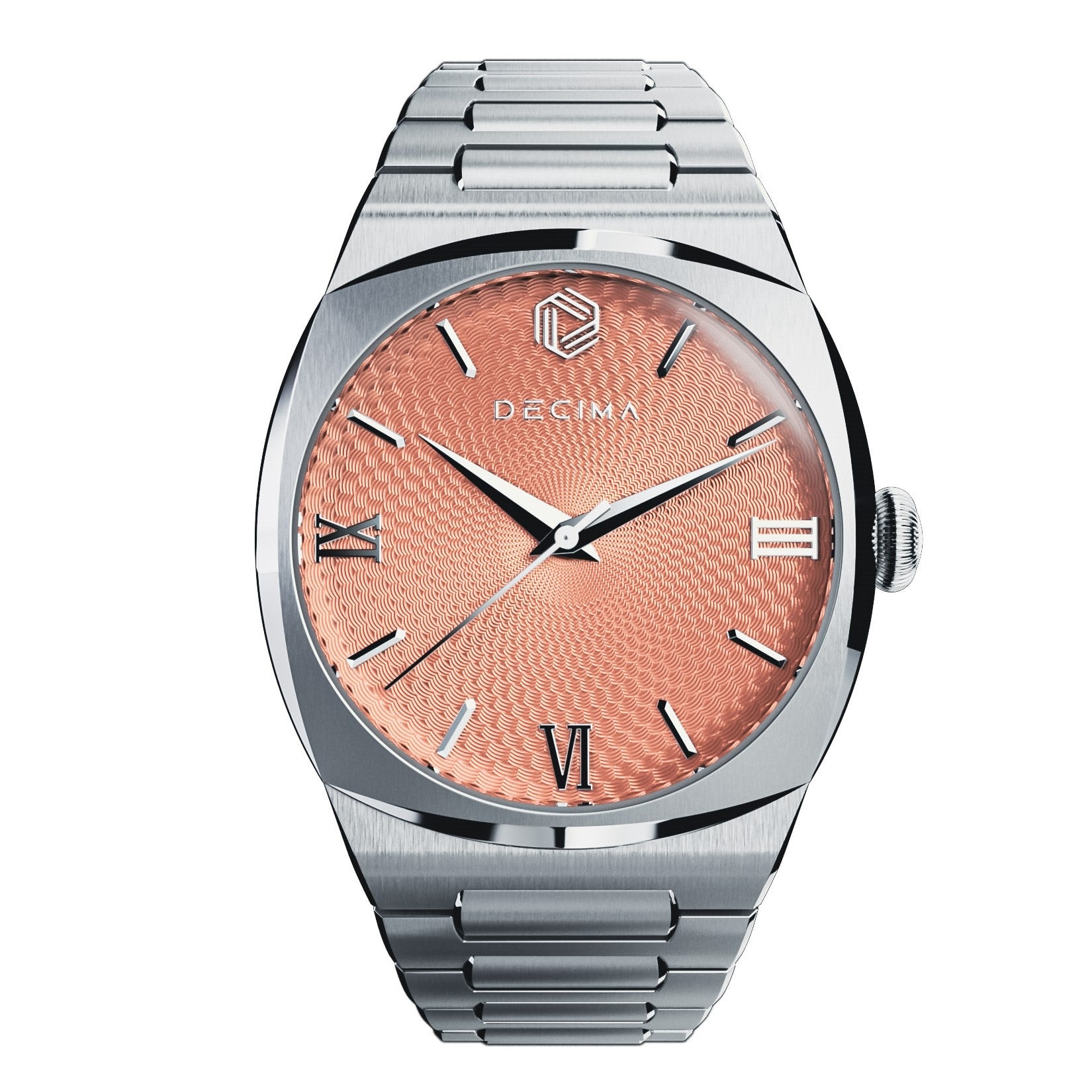 The Decima Gatekeeper Collection seamlessly blends two distinct worlds of watchmaking. Its classic dial showcases elegant dauphine hands, Roman numerals, and a guilloché panier pattern, while the bold, modern case stands out with its unique shape and a mix of brushed and mirror-polished finishes. The Gatekeeper boldly demonstrates that combining contrasting styles in a single timepiece creates a striking, standout statement.