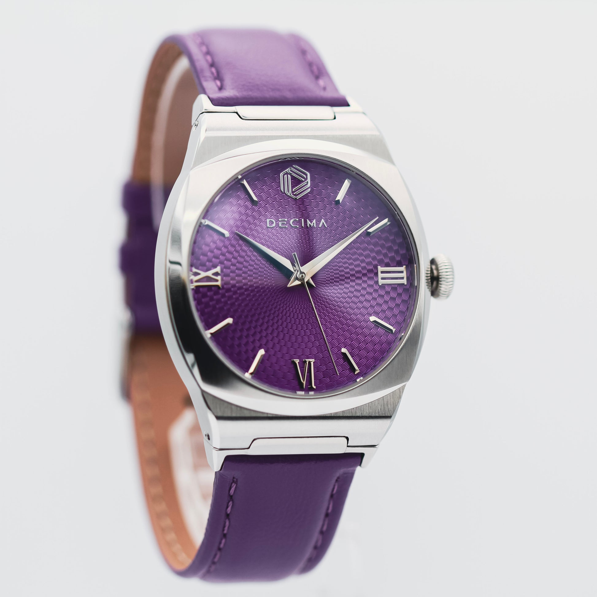 The strap is secured with a solid stainless steel pin buckle, elegantly signed with the Decima logo. This refined detail enhances both form and function, adding a touch of distinction while ensuring a secure and comfortable fit. The engraved logo is a subtle mark of authenticity, reflecting Decima’s dedication to craftsmanship and the pursuit of understated luxury in every component.